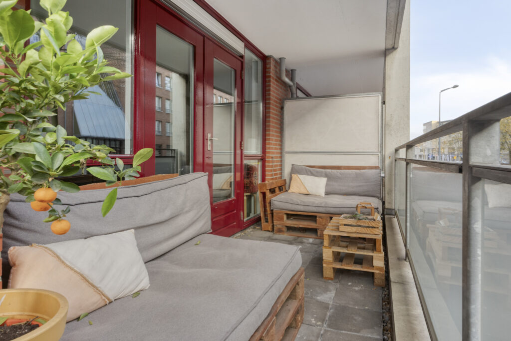 Openslaande deuren in de woonkamer geven toegang tot het circa 10.6 m2 grote balkon op het zonnige zuiden. Dit is een fijne plek om gezellig samen buiten te zitten, te borrelen en een hapje te eten. Dat wordt genieten!