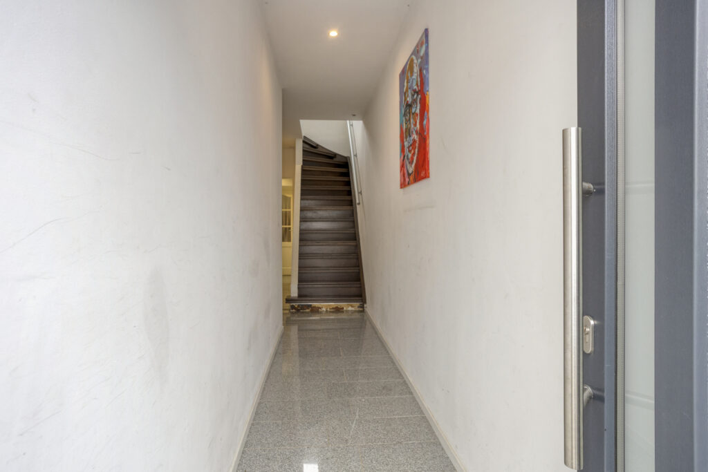 Achter de voorgevel met karakter gaat een verrassend ruime woning schuil! Open de voordeur en stap de hal in, die een totale lengte van bijna 10 meter heeft. De originele trap is behouden, de wanden en het plafond zijn gestuct en er ligt een granieten vloer. Aan het einde van de hal is de vernieuwde toiletruimte, met een wandcloset en een fonteintje.