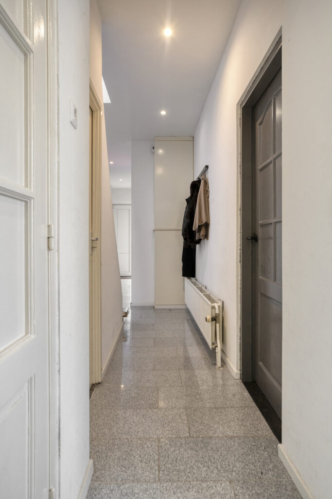 De hal is een heerlijk grote ruimte met een keurige afwerking van de wanden, vloer en het plafond. In bijna het hele appartement ligt laminaat en via de intercom in de hal kun je de deur van de centrale entree openen.