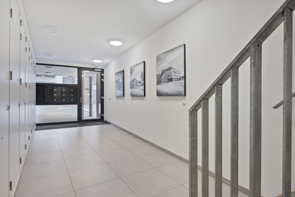 Oalder State heeft een fraaie, overdekte entree aan de kant van de Clarastraat. Aan de buitenzijde zijn de brievenbussen en het bellentableau met video-intercom. Uw privéberging bevindt zich op de begane grond en de twee parkeerplaatsen zijn gesitueerd in de afsluitbare parkeergarage, onder het complex ‘Lisweg’. In de gezamenlijke hal hangt kunst aan de muur, een van de oude situatie als horecapand en een van de huidige situatie.