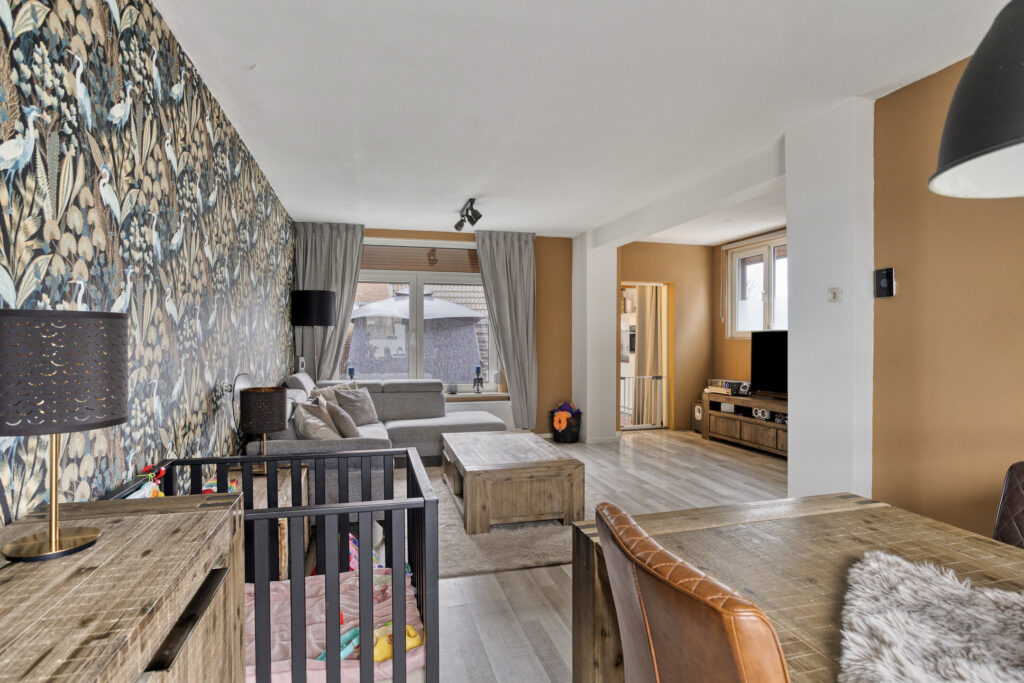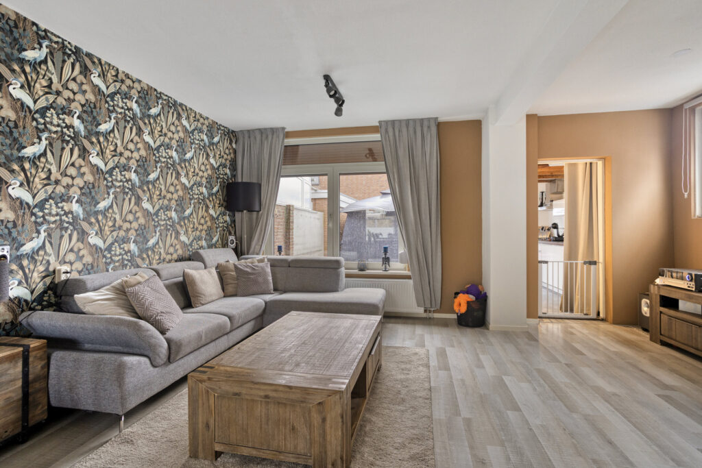 - Sfeervolle woonkamer met visgraatvloer;