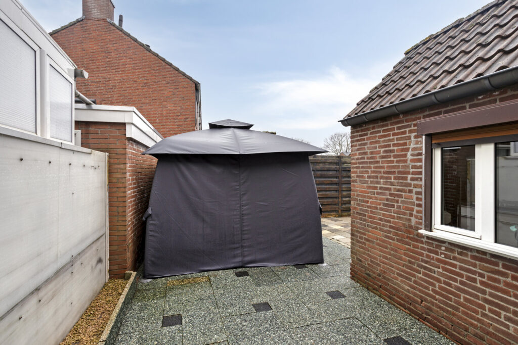 - Verrassend diepe achtertuin met een schuurtje, achterom, pergola en veranda;